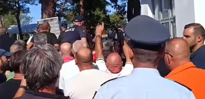«Είσαι ανίκανος να δώσεις λύσεις, είσαι ανεπιθύμητος. Να σηκωθείς να φύγεις» φώναζαν –μεταξύ άλλων– στον υφυπουργό. Κάποιοι, μάλιστα, πέταξαν καφέδες και νερά, με τον υφυπουργό απομακρύνεται από ισχυρή αστυνομική δύναμη.