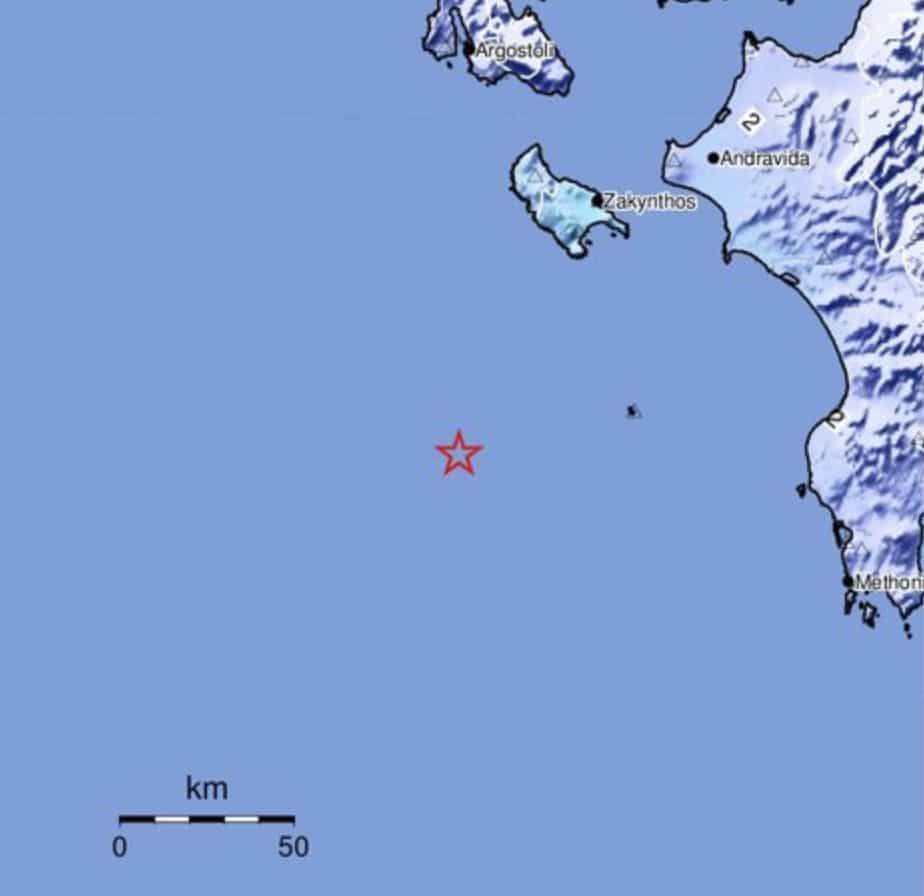 Το επίκεντρο του σεισμού εντοπίζεται 60 χλμ Δυτικά, νοτιοδυτικά των Στροφάδων, ανοιχτά της Ζακύνθου.