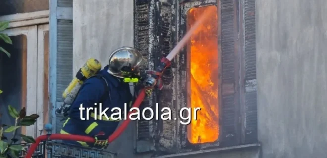 Στάχτη έγινε σήμερα το μεσημέρι το εσωτερικό του ισογείου και του πρώτου ορόφου, αλλά και της σκεπής παλιάς μονοκατοικίας, που βρίσκεται απέναντι ακριβώς από τον Μητροπολιτικό Ιερό Ναό του Αγίου Νικολάου στα Τρίκαλα.