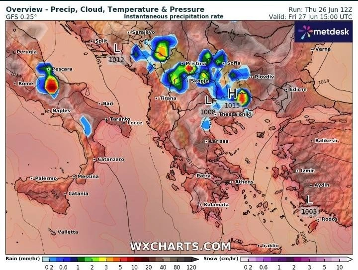 Αυτά τα φαινόμενα θα πλησιάσουν μέχρι την βόρεια περίπου Θεσσαλία.