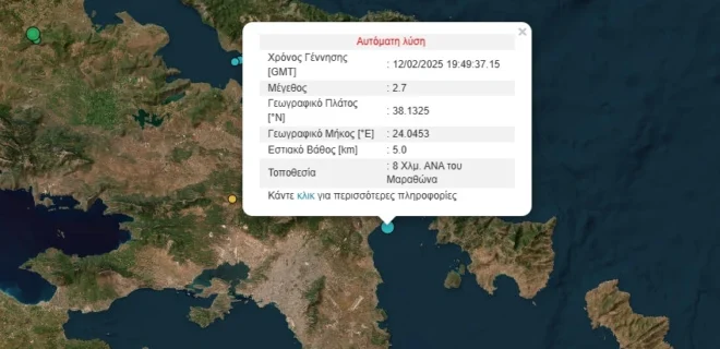 Σεισμός σημειώθηκε το βράδυ της Τετάρτης 12 Φεβρουαρίου, στον Μαραθώνα.