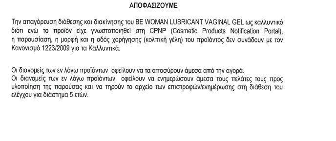 Η απόφαση πάρθηκε επειδή καθώς παραβιάζει τους κανονισμούς για τα καλλυντικά προϊόντα.