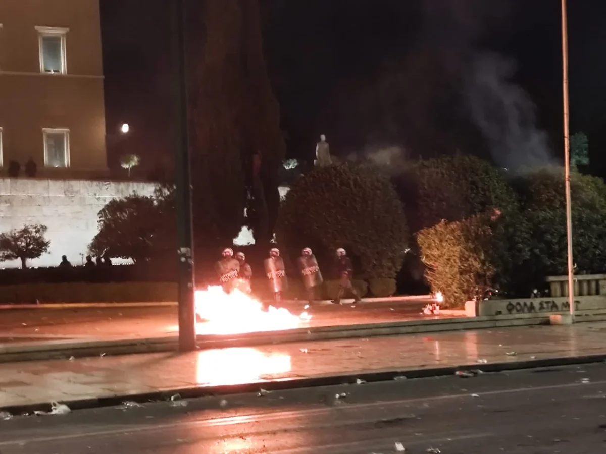 Σε εξέλιξη είναι επεισόδια στην Πλατεία Συντάγματος με συγκρούσεις των κουκουλοφόρων με τους αστυνομικούς, που απάντησαν κάνοντας χρήση χημικών, ενώ χρησιμοποιήθηκε και το υδροβόλο όχημα «Αίαντας».