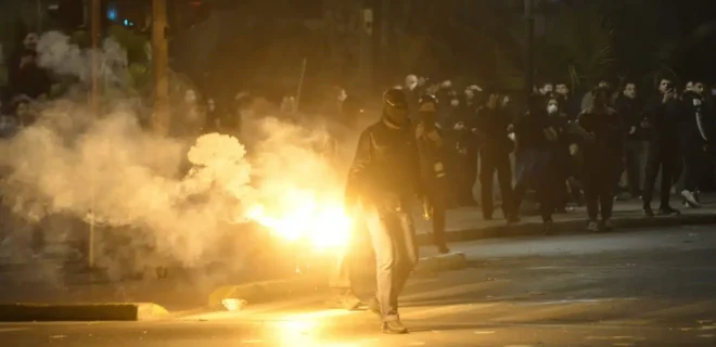 Επεισόδια βρίσκονται σε εξέλιξη στη Θεσσαλονίκη, μετά τη συγκέντρωση για το σιδηροδρομικό δυστύχημα των Τεμπών.