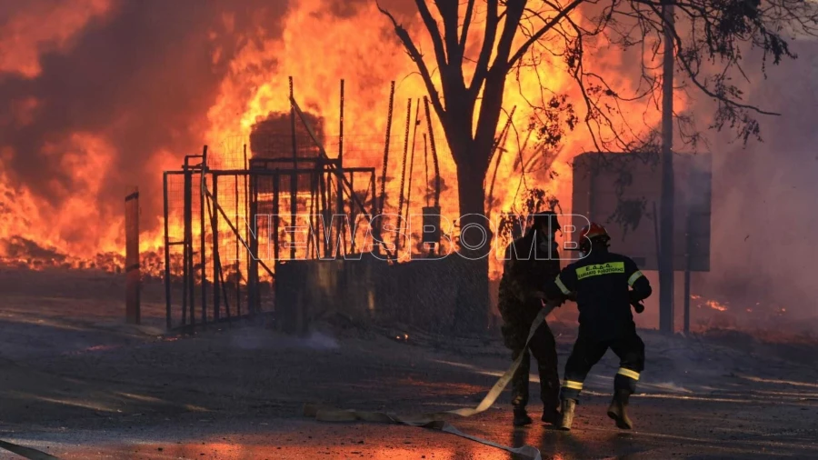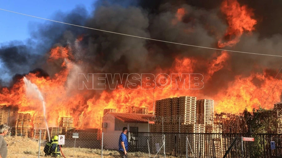 Στο σημείο επιχειρούν 50 πυροσβέστες με 20 οχήματα, ενώ από αέρος επιχειρούν τέσσερα ελικόπτερα. Οι άνεμοι δυσχαιρένουν το έργο της κατάσβεσης της πυρκαγιάς, η οποία καίει παλέτες και εύφλεκτα υλικά.