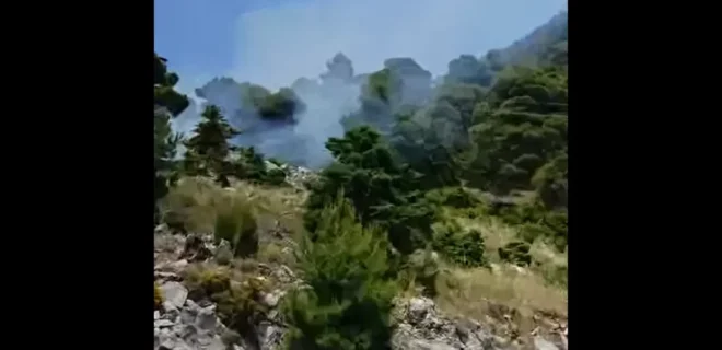 Λόγω της φωτιάς διακόπηκε η κυκλοφορία των οχημάτων στην οδό Κιθαιρώνος, στην περιοχή των Βιλίων.