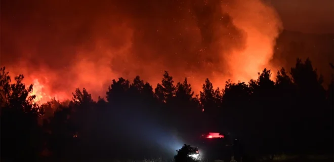 Η φωτιά ξεκίνησε όταν ένα φορτηγό έπεσε σε χαράδρα, με αποτέλεσμα να τυλιχθεί στις φλόγες.