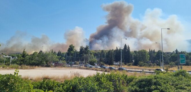 Φωτιά στην Παιανία – Ισχυρή κινητοποίηση της Πυροσβεστικής κοντά στην Αττική Οδό