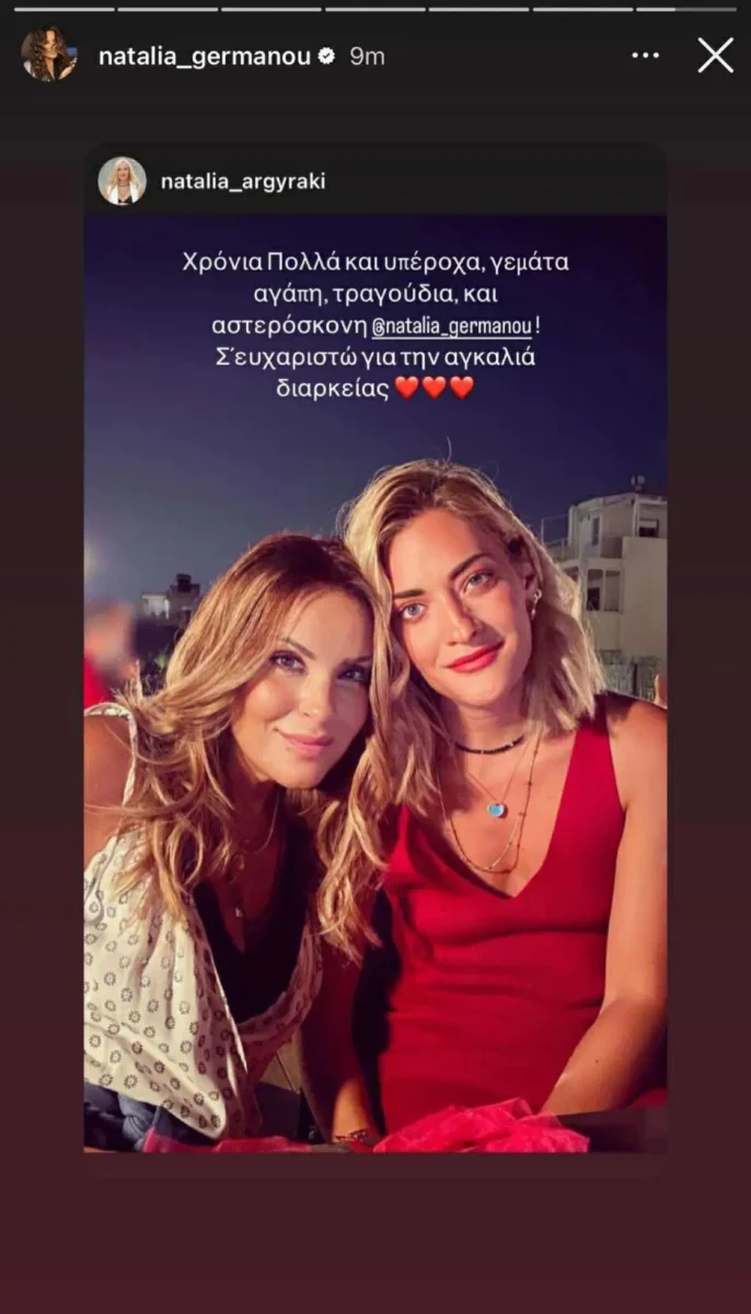 Εντωμεταξύ, πολλοί από τους φίλους και τους συνεργάτες της Ναταλίας Γερμανού θέλησαν να της ευχηθούν και μέσα από τα social media τους με αναρτήσεις, όπως έκανε και η Ναταλία Αργυράκη, δημοσιεύοντας μία κοινή τους φωτογραφία και σημειώνοντας: