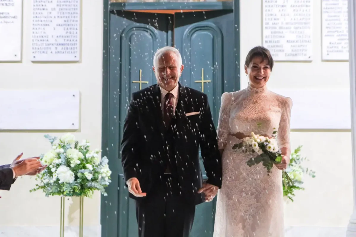 Κουμπάροι του ζευγαριού είναι οι φίλοι τους Γιώργος Μακρόπουλος και η σύζυγός του Άννα. Μάλιστα, στον γάμο έδωσαν το «παρών» και τα παιδιά που έχουν αποκτήσει από τους προηγούμενους γάμους τους.
