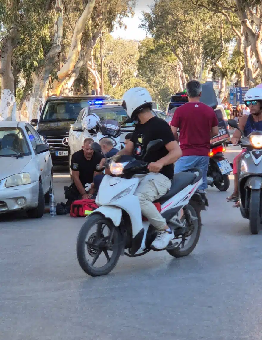 Ένας αστυνομικός – αποσπασμένος από τη Θεσσαλονίκη και υπηρετώντας προσωρινά στη Σαντορίνη – έπεσε δίπλα του και άρχισε να του προσφέρει πρώτες βοήθειες