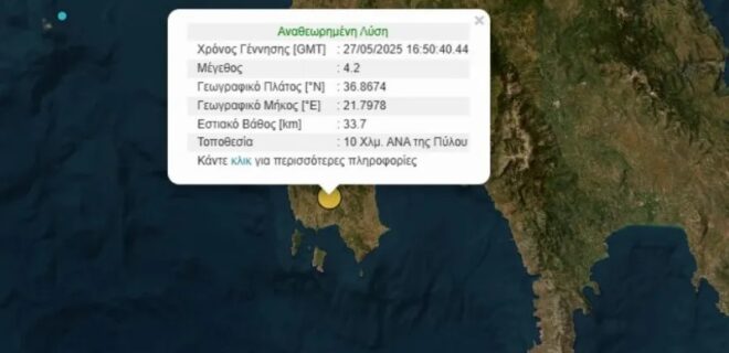 Σεισμός 4,2 Ρίχτερ σημειώθηκε στην Πύλο.