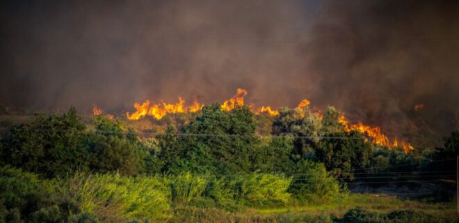 Η φωτιά που ξέσπασε σε χαμηλή βλάστηση στην περιοχή Φλογεραίικα του Δήμου Ερυμάνθου, Αχαΐας, παραμένει εκτός ελέγχου, με τις αρχές να εκδίδουν επανειλημμένες εντολές εκκένωσης μέσω του 112.
