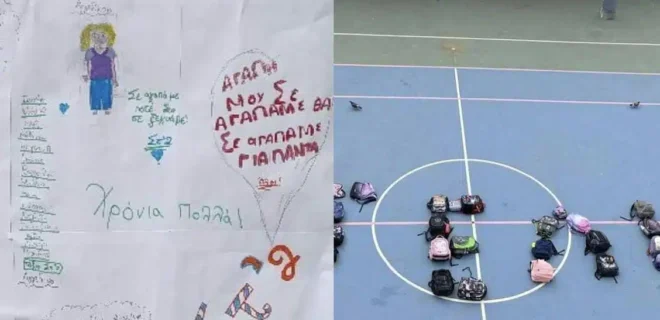 Η μαθητική κοινότητα του 23ου Δημοτικού Σχολείου Καλλιθέας έχει συγκλονιστεί από την απώλεια της 7χρονης που το χαμόγελό της φωτιζε το σχολείο. Σήμερα θέλοντας να την αποχαιρετήσουν με το δικό τους τρόπο, οι συμμαθητές της συγκεντρώθηκαν στο προαύλιο του σχολείου και σχημάτισαν με τις τσάντες τους το όνομά της ενώ κόλλησαν στα τζάμια των τάξεων ζωγραφιές και μηνύματα για να της δείξουν πόσο την αγαπούν και πως δεν θα την ξεχάσουν ποτέ. Με ανακοίνωσή του ο Σύλλογος Γονέων και Κηδεμόνων του σχολείου αποχαιρετά την 7χρονη γνωστοποιώντας και το πότε θα γίνει η κηδεία του μικρού κοριτσιού.
