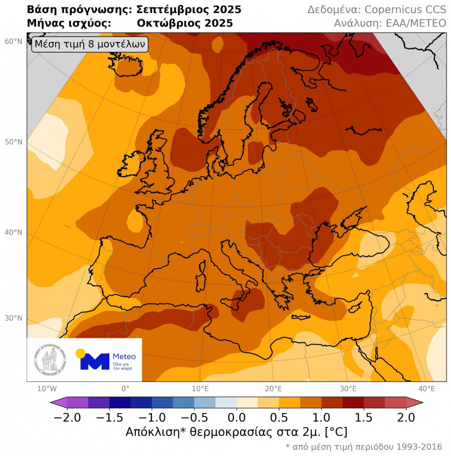 Ο ερχόμενος Οκτώβριος αναμένεται θερμότερος του κανονικού στη Νοτιοανατολική Ευρώπη, συμπεριλαμβανομένης της Ελλάδας, σύμφωνα με τις μακροπρόθεσμες προγνώσεις που εκδόθηκαν στις αρχές Σεπτεμβρίου.