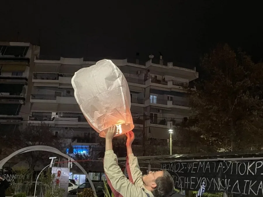 Η διαμαρτυρία ξεκίνησε με μια συγκέντρωση έξω από το κτίριο του σταθμού, όπου οι φοιτητές άναψαν φαναράκια και κρατούσαν πανό με τα ονόματα των αδικοχαμένων θυμάτων.
