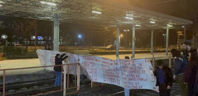 Ειδικότερα, φοιτητές της Ιατρικής σχολής Λάρισας πραγματοποίησαν το απόγευμα μια δυναμική διαμαρτυρία, αποκλείοντας τις σιδηροδρομικές γραμμές μπροστά από τον Σταθμό του ΟΣΕ στη Λάρισα, στη μνήμη των 57 θυμάτων της τραγωδίας των Τεμπών.