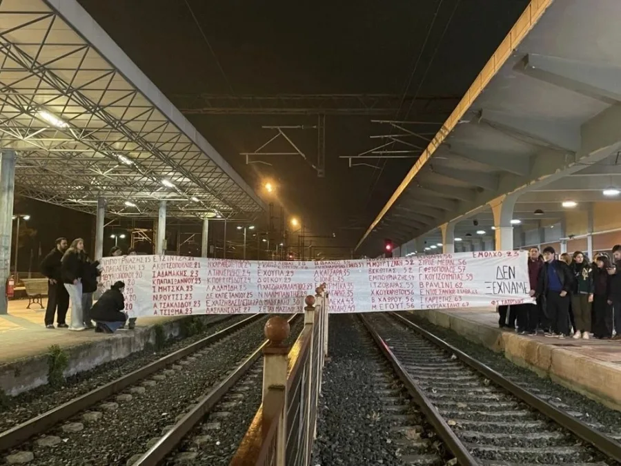 Λίγες ώρες πριν την συμπλήρωση δύο χρόνων από την μαύρη επέτειο του σιδηροδρομικού δυστυχήματος στα Τέμπη, φοιτητές της Λάρισας έδωσαν βροντερό παρών έξω από τον Σιδηροδρομικό Σταθμό της πόλης.