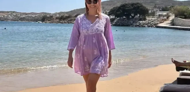 Τις καλοκαιρινές της διακοπές απολαμβάνει η Μάρα Ζαχαρέα στην Πάρο, μακριά από τους έντονους ρυθμούς της πόλης.