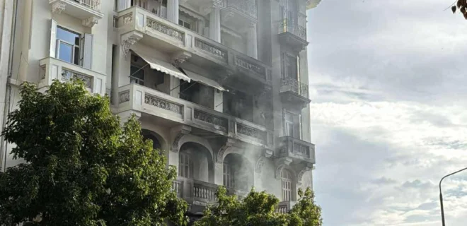 Ειδικότερα, η φωτιά ξέσπασε λίγο μετά τις 14:20 υπό άγνωστες συνθήκες σε πατάρι γνωστού μπαρ της οδού, στο ύψος της Αγίας Σοφίας.