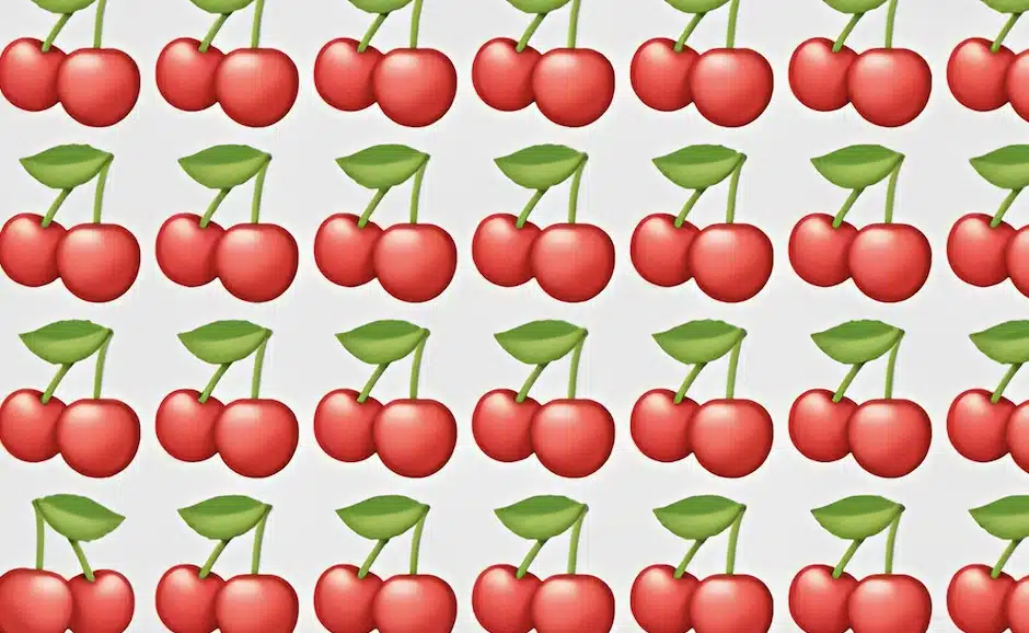 Η εικόνα είναι ένα οπτικό τεστ παρατηρητικότητας που προτρέπει τον θεατή να εντοπίσει το “διαφορετικό” αντικείμενο ανάμεσα σε πολλές όμοιες εικόνες από κεράσια.