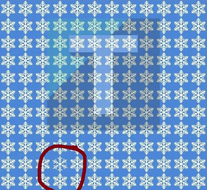 Στο συγκεκριμένο τεστ, παρουσιάζονται πολλές όμοιες χιονονιφάδες σε μπλε φόντο, με την πρόκληση να εντοπιστεί μια διαφορετική χιονονιφάδα που ξεφεύγει από το ομοιόμορφο μοτίβο.