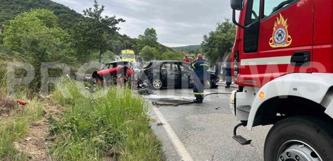 Σφοδρή σύγκρουση δύο οχημάτων σημειώθηκε σε επαρχιακή οδό (προς Ελευθερούπολη) κοντά στον Άγιο Ανδρέα στη Καβάλα.