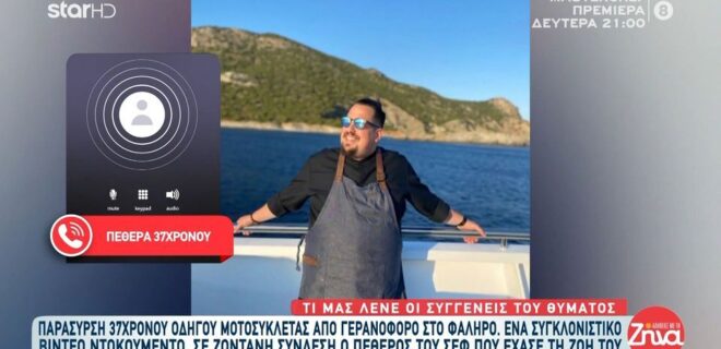 Ο τραγικός θάνατος ενός 37χρονου σεφ στη Μαρίνα Φλοίσβου, στις 10 Ιανουαρίου, έχει προκαλέσει βαθιά θλίψη, ενώ η οΕίναι η στιγμή που βίντεο ντοκουμέντο δείχνει την φονική παράσυρση 37χρονου οδηγού μηχανής από γερανοφόρο όχημα την ώρα που αυτό κάνει όπισθεν στη Μαρίνα Αθηνών.