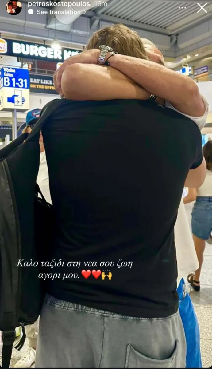 Σήμερα, Δευτέρα 18 Αυγούστου, ο γνωστός παρουσιαστής και πρώην εκδότης έκανε μια ιδιαίτερα συγκινητική ανάρτηση στο Instagram με τον 18χρονο γιο του, Μάξιμο. Στη φωτογραφία πατέρας και γιος αγκαλιάζονται τρυφερά στο αεροδρόμιο, με τον Πέτρο Κωστόπουλο να γράφει: «Καλό ταξίδι στη νέα σου ζωή αγόρι μου».