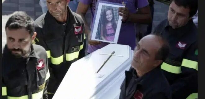 Το αποκαλυπτικό λευκό φέρετρο ενος παιδιού ξεχώριζε στη σειρά με τα άλλα φέρετρα, η ιστορία του μικρού κοριτσιού δυνάμωσε την καρδία της Ιταλίας κατά την διάρκεια της κηδείας για 35 από τους 291 ανθρώπους που σκοτώθηκα στο μεγάλο σεισμό που έπληξε το κέντρο της Ιταλίας. Τουλάχιστον ακόμα 400 άνθρωποι τραυματίστηκαν.