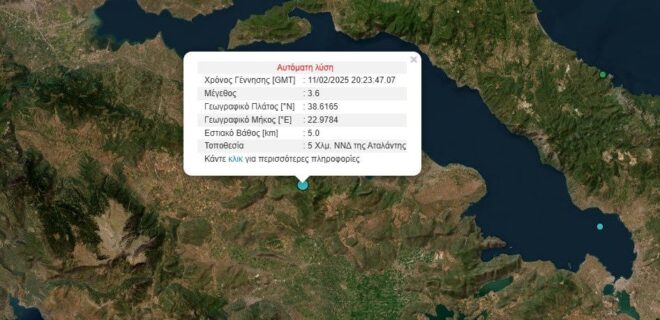 Νέα σεισμική δόνηση σημειώθηκετο βράδυ της Τρίτης 11 Φεβρουαρίου στην Αταλάντη.