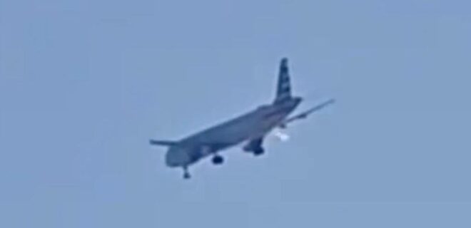 Σε βίντεο που αναρτήθηκαν στα μέσα κοινωνικής δικτύωσης δείχνουν ίχνη καπνού να ακολουθούν το αεροσκάφος και φωτιά να βγαίνει από το πλάι του κινητήρα.