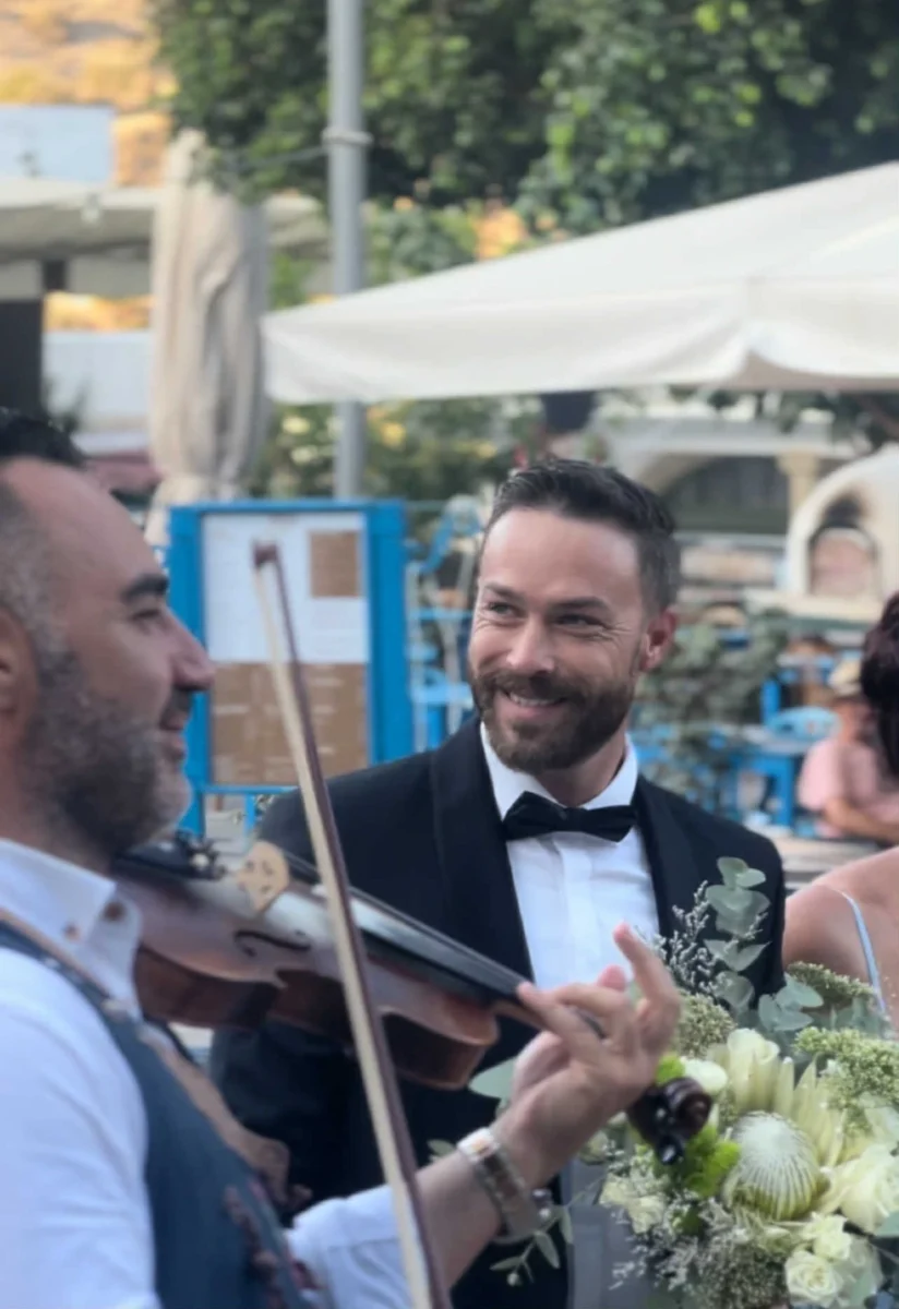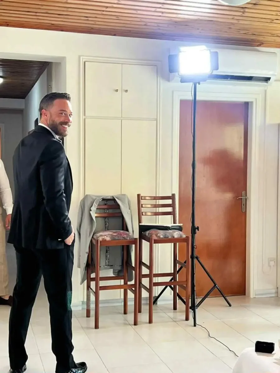 Νωρίτερα το μεσημέρι, το κλίμα ήταν ιδιαίτερα συγκινητικό και στο σπίτι του γαμπρού, όπου τηρήθηκε το κυπριακό έθιμο των «Αλλαγμάτων». Ο γνωστός ηθοποιός, έχοντας στο πλευρό του την οικογένειά του και τους φίλους του, ετοιμάστηκε για τη μεγάλη στιγμή, φορώντας ένα κομψό μαύρο κοστούμι με παπιγιόν σε κλασική γραμμή.