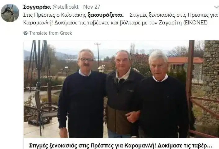 Σύμφωνα με τα “Νέα”, ο κ. Καραμανλής βρέθηκε μαζί με φίλους του στην αγαπημένη του ψησταριά, μακριά από τα κοσμικά του κέντρου της πόλης, στον Χορτιάτη, να απολαμβάνει το αγαπημένο του… αγριογούρουνο στη γάστρα.