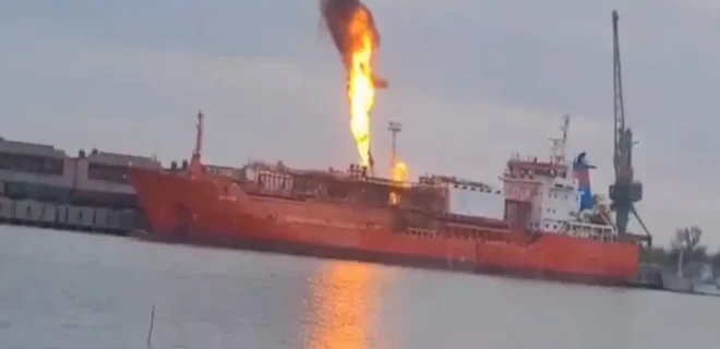 Η ρωσική αεροπορική επιδρομή στο δεξαμενόπλοιο, που μετέφερε περίπου 4.000 τόνους υγροποιημένου αερίου, προκάλεσε φωτιά, όπως φαίνεται και σε βίντεο που δημοσιεύτηκαν στα social media από την περιοχή.