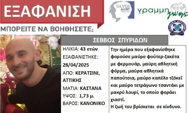 Ο 43χρονος άνδρας το μεσημέρι της Δευτέρας (28/4) έφυγε από το σπίτι του για να μεταβεί στην εργασία του, στην περιοχή του Ταύρου. Ο Σπύρος Σέββος ενημέρωσε τη σύζυγό του πως θα πάει στην εργασία του προκειμένου να ενημερώσει ότι θα χρειαστεί να λείψει για λίγες ημέρες καθώς έπρεπε να κάνει μία εγχείρηση. Έκτοτε δεν έδωσε κάποιο σημείο ζωής.