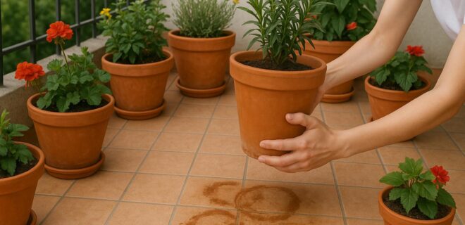 Όσο όμορφα και αν στολίζουν τη βεράντα μας, οι γλάστρες αφήνουν συχνά πίσω τους ανεπιθύμητα σημάδια στα πλακάκια.