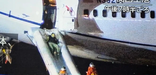Η προσγείωση έγινε γύρω στις 7 μ.μ. τοπική ώρα (1 μ.μ. ώρα Ελλάδος). Σύμφωνα με το NHK, που επικαλείται πηγές από το αεροδρόμιο και το ιαπωνικό υπουργείο Μεταφορών, οι επιβάτες εγκατέλειψαν το αεροπλάνο χρησιμοποιώντας τις τσουλήθρες έκτακτης ανάγκης.