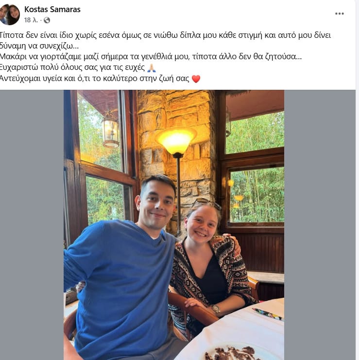 Μια συγκινητική ανάρτηση έκανε ο Κώστας Σαμαράς ανήμερα των γενεθλίων του.