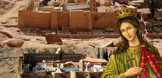 Επί βυζαντινού αυτοκράτορα Ιουστινιανού, ανάμεσα στο 527 και 565, ανεγέρθηκε η μονή στο σημείο που βρίσκονταν η «φλεγόμενη βάτος» του Μωυσή. Το μέρος θεωρείται ιερό για χριστιανούς, μουσουλμάνους και Εβραίους.