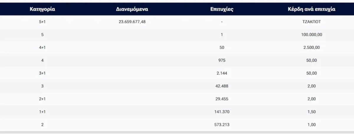 Ωστόσο, 4 τυχεροί στη κατηγορία 5 κερδίζουν από 100.000 ευρώ.