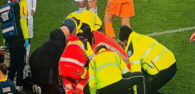 Οι γιατροί της ομάδας αντέδρασαν άμεσα. Τοποθέτησαν στον ποδοσφαιριστή κολάρο και τον μετέφεραν εκτός αγωνιστικού χώρου με φορείο, ακολουθώντας όλα τα απαραίτητα πρωτόκολλα ασφαλείας.