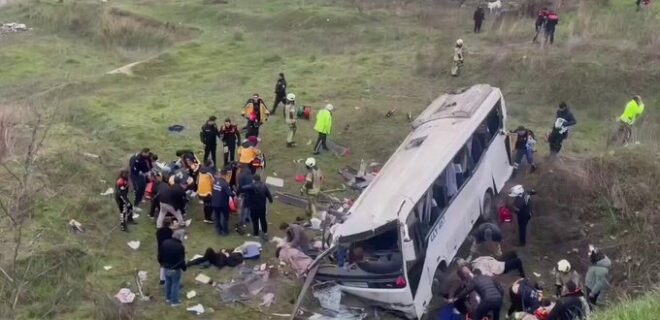 Τροχαίο δυστύχημα με λεωφορείο σημειώθηκε το απόγευμα του Σαββάτου στο Εσενγιούρτ της Κωνσταντινούπολης. Το λεωφορείο εξετράπη της πορείας του και κατέληξε σε χαράδρα, με τραγικό απολογισμό νεκρούς και τραυματίες.