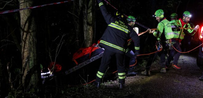 Rescue workers recover a body at the site of a cable car crash that killed four people in Monte Faito, near Naples, Italy April 17, 2025. REUTERS/Stringer TPX IMAGES OF THE DAY