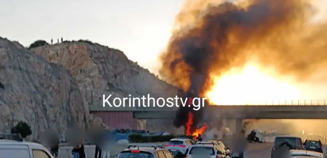 Στο σημείο που ανατράπηκε η νταλίκα ακούστηκε έκρηξη και στη συνέχεια το όχημα έπιασε φωτιά με αποτέλεσμα να διακοπεί η κυκλοφορία στην εθνική οδό Αθηνών Κορίνθου στα Μέγαρα και οι οδηγοί να έχουν ακινητοποιηθεί στην Κακιά Σκάλα.