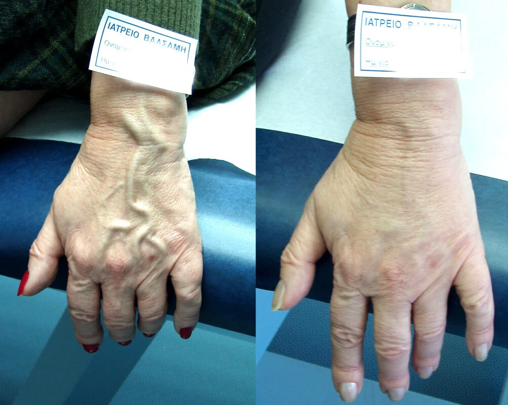 2. Κατάσταση μπλε φλεβών στα χέρια λόγω παθολογικών παραγόντων: