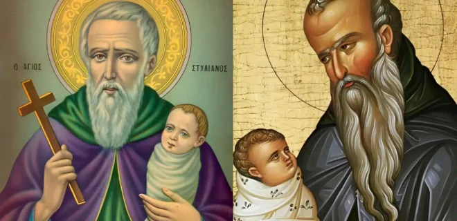 Άγιος Στυλιανός: Ο Άγιος Στυλιανός, τη μνήμη του οποίου τιμά η Εκκλησία στις 26 Νοεμβρίου έκαστους έτους, εικονογραφείται με ένα νήπιο σπαργανωμένο στην αγκαλιά του, γεγονός που συμβολίζει ότι είναι ο προστάτης των νηπίων.