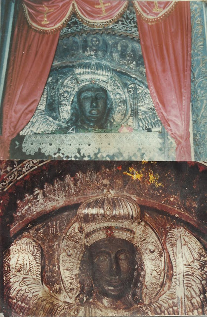 Υπάρχει όμως μια πολύ μεγάλη διαφορά!!! Στην επάνω φωτό ο Ταξιάρχης είναι με ανοιχτό το στόμα, ενώ στην κάτω με κλειστό, όπως είναι καθημερινά όταν επισκέπτεται κάποιος τον ιερό ναό για να προσκυνήσει.