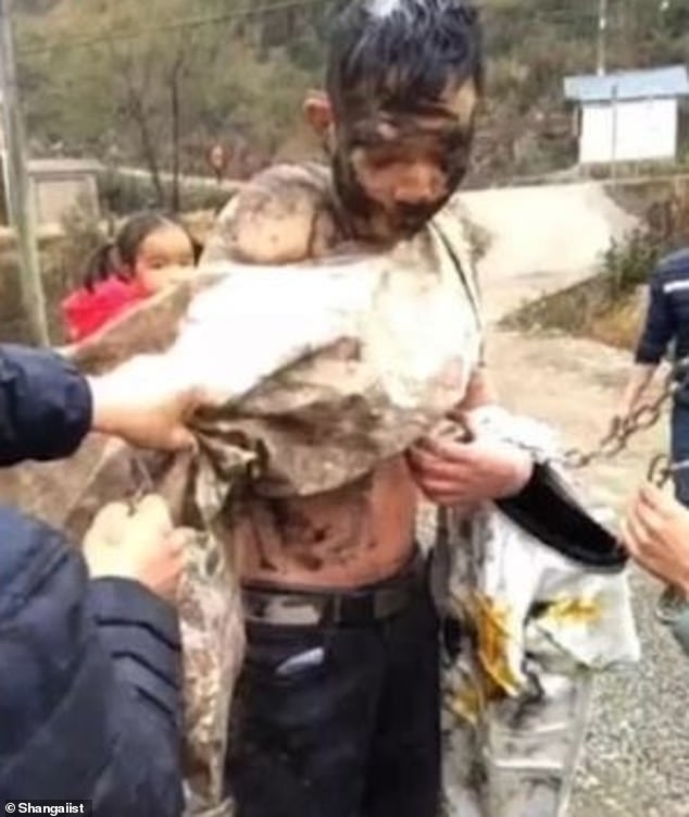Οι φίλοι του κ. Guangtao τον έδεσαν σε ένα στύλο ηλεκτρικού ρεύματος και τον χτυπούσαν με μπαμπού πριν τον “λούσουν” με μελάνι, αυγά και μπύρα.