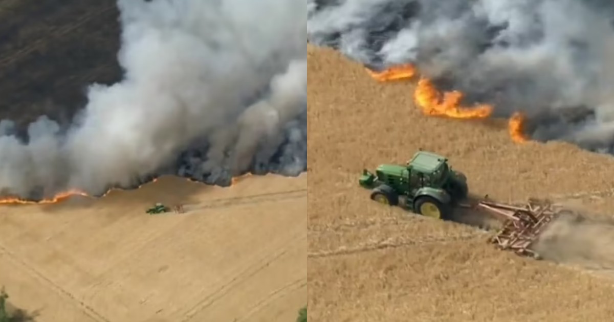 Πλάνα που κάνουν τον γύρο του κόσμου, δείχνουν το πράσινο τρακτέρ μόλις λίγα μέτρα μακριά από την τεράστια κόλαση, καθώς ο κύριος Αλεξάντερ οδήγησε άφοβα το όχημα γύρω από τον πανύψηλο καπνό και τις φλόγες.